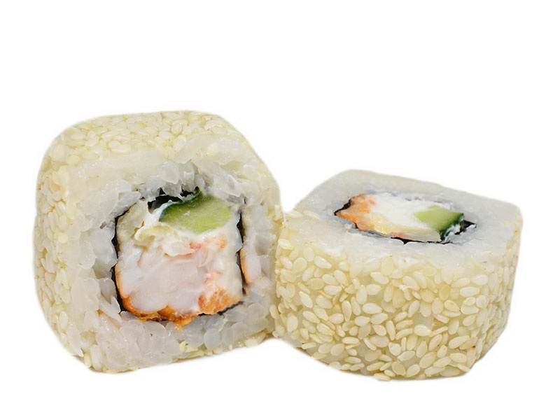 рис, нори, кунжут, сыр, соус спайс, огурец, креветка темпура